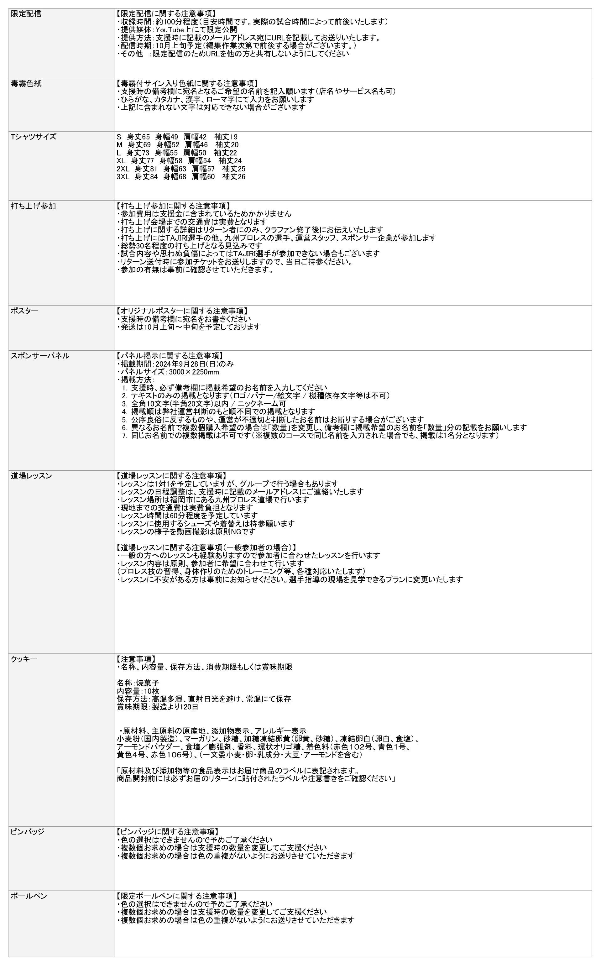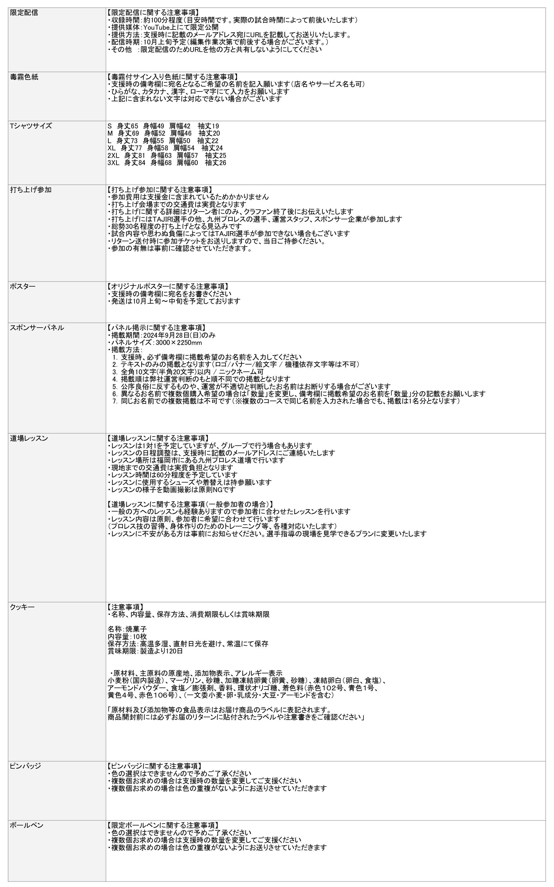 ※その他の注意事項はご支援ページに掲載の注意事項をご参照ください