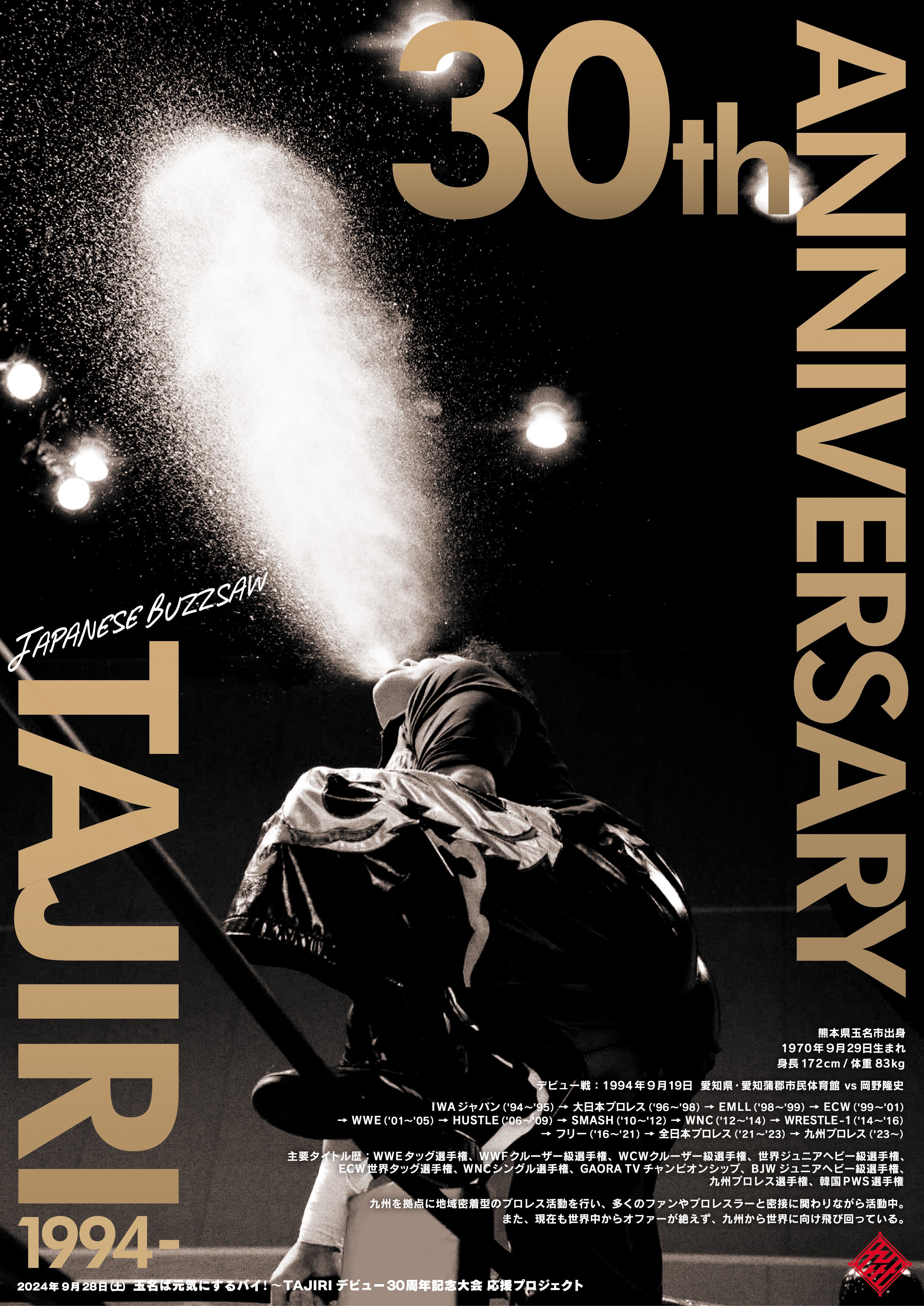 2024年9月28日@玉名市総合体育館でTAJIRIデビュー30周年記念大会を行います。