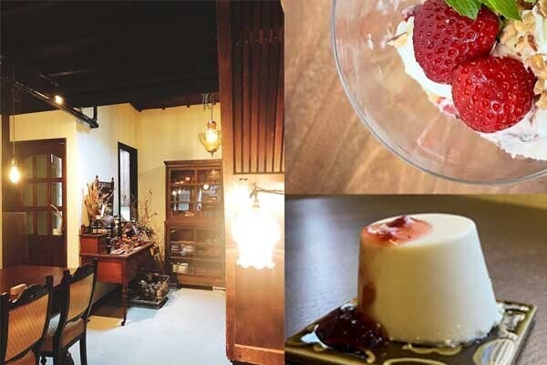 「京都チーズケーキ博物館 ぱふぇ室」として 明治からの町屋を改装した大正浪漫の店内にて