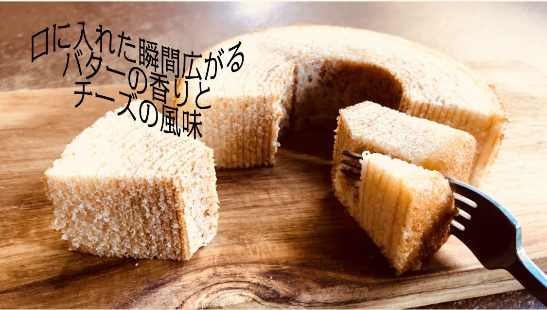 バターとチーズの濃厚な香りと味わいが口の中に広がる旨味の塊のようなバームクーヘンです。