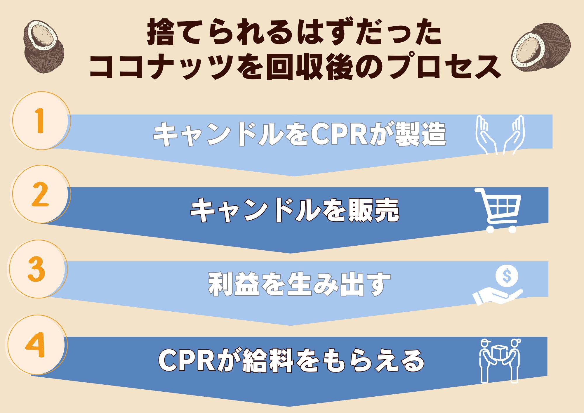捨てられるはずだったココナッツで、CPRとキャンドルを製造します。