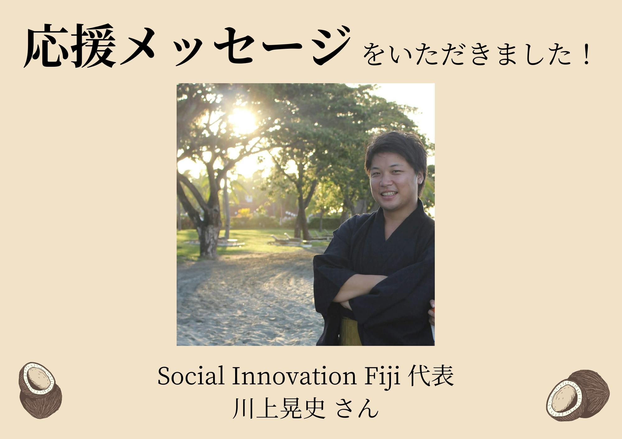 Social Innovation Fiji 代表 川上晃史さんより応援メッセージをいただきました!