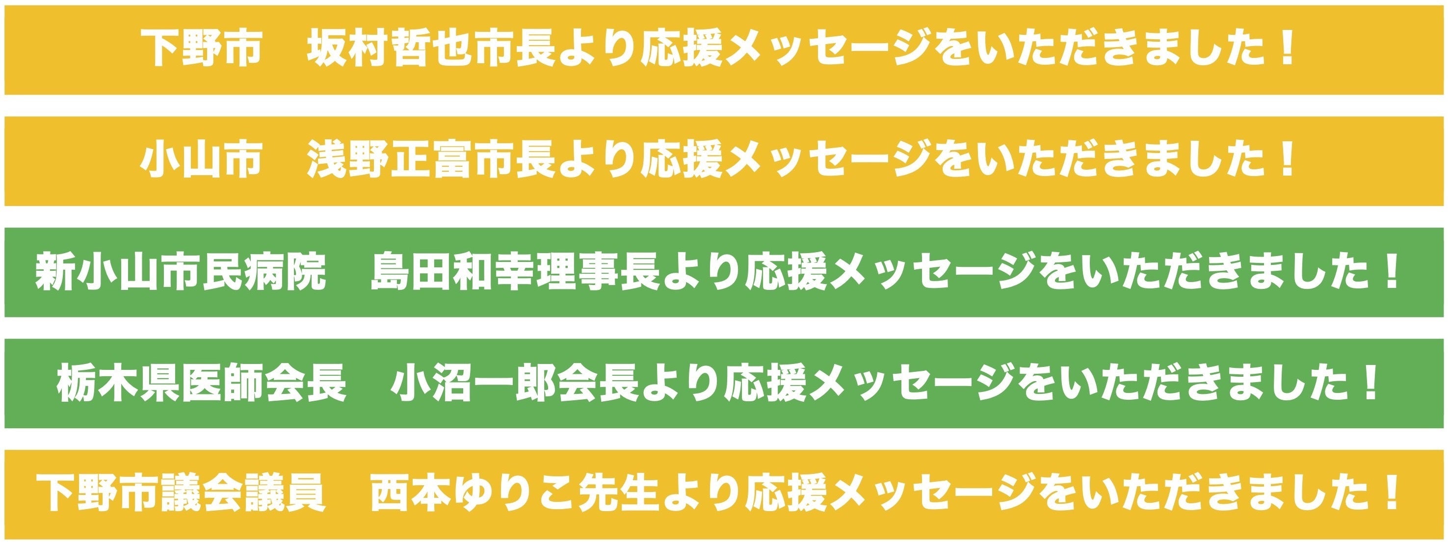 自治医科大学の佐田先生をはじめ外科の皆さんがお考えになる、栃木県の外科診療を守りたいとの思いに強く賛同いたします。下野市では市民の健康推進の取り組みとして「健康しもつけ21プラン」を策定しております。本施策における取り組みにがんの早期発見があり、がん治療において手術治療は大きな柱の一つであります。若手医師の育成を通して、自治医科大学が今後も高度な外科医療を提供していただくことを期待しております。