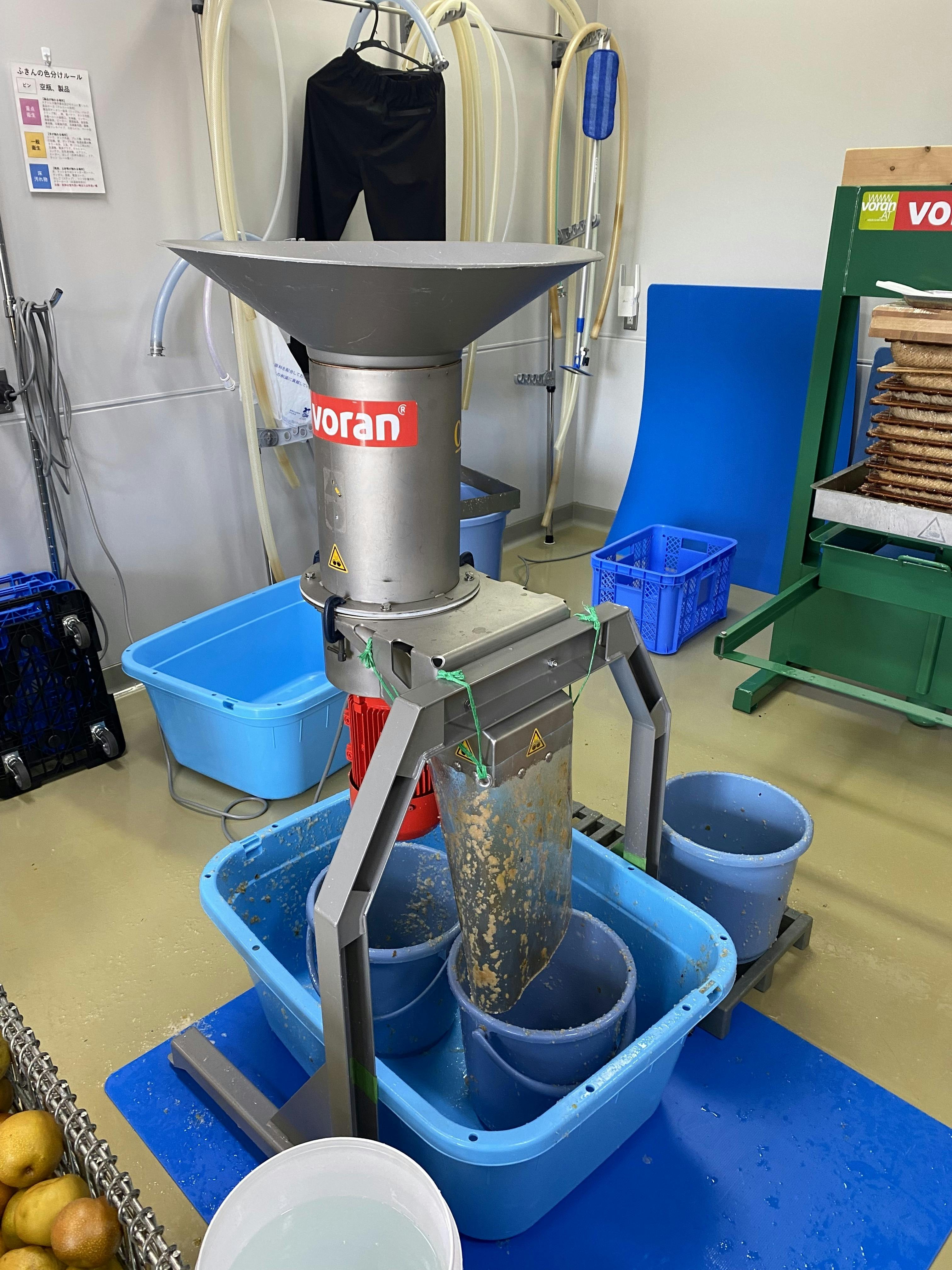 果肉を絞る圧搾の工程はりんご専用の絞り機を使い時間をかけて圧力を高めていくことで歩留まりもよく、さらに果肉の搾りかすは飼料として活用することで無駄なく使い切ることができました。