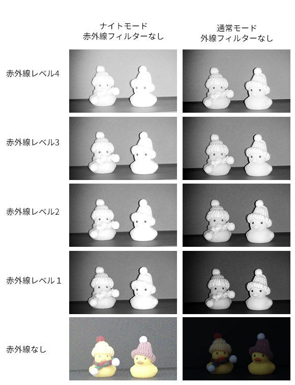 赤外線機能を使用している場合、カラーに表示も可能ですが、白黒のイメージングの方が優れています。