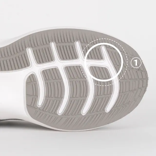 ①アウトソールは小さな溝がある設計で滑りにくい。