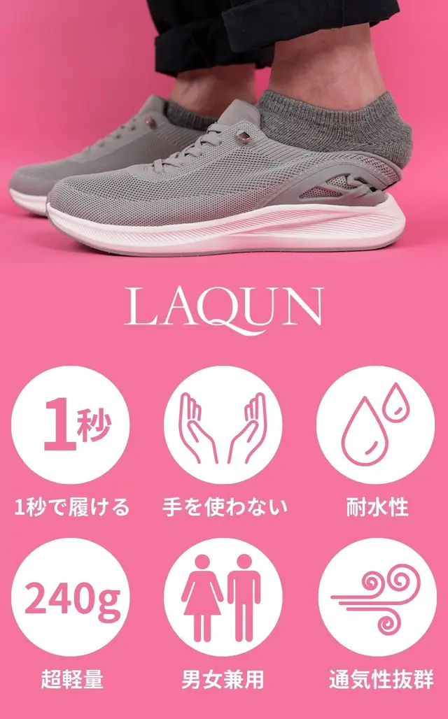 『LAQUN(ラクーン)』は靴の脱ぎ履きを再発明する革新的シューズです。毎日が劇的に楽になります!