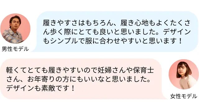 「楽で誰でも履けるシンプルなスニーカー」を作ると言うアイデアから始まったこのプロジェクトは、コンセプト企画から、プロトタイプの作成など試行錯誤を重ね、社内チーム一丸となって開発に漕ぎ着けました。日常生活で誰もが使う「靴」という製品を通じて、皆さまの人生をもっと”楽”にします。