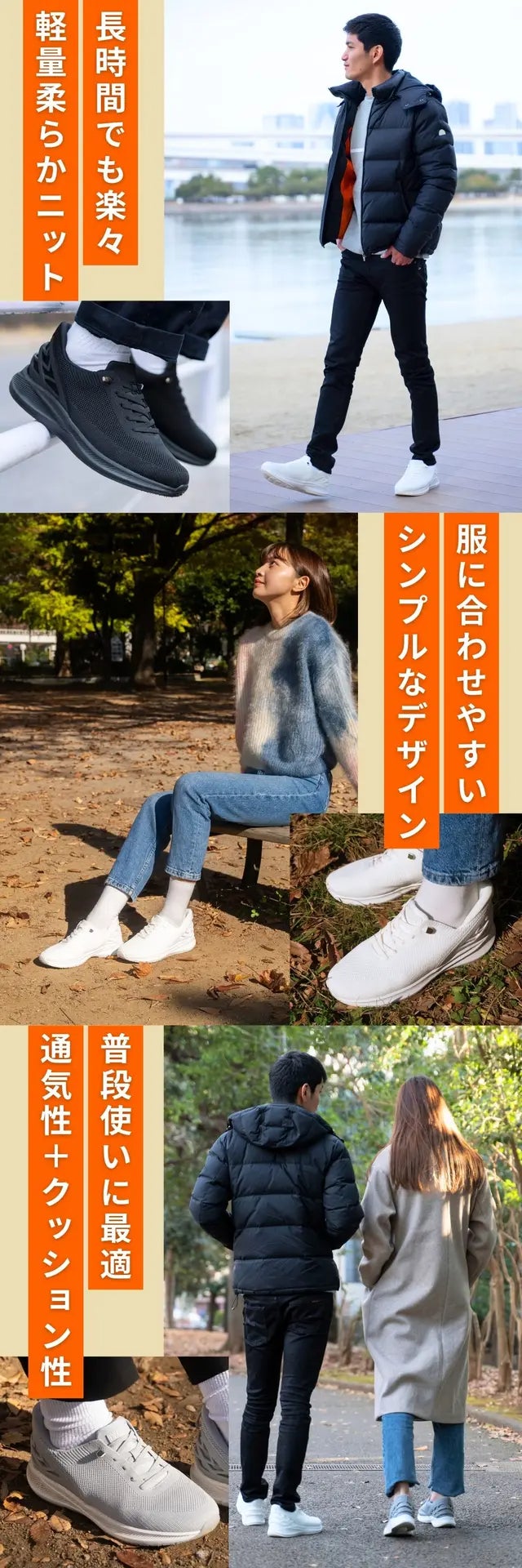 かかとを踏んで足を入れるだけでスポッとはハマります。通勤、ウォーキングなどあらゆるシーンで抜群の「履きやすさ」と「履き心地」を生み出します。