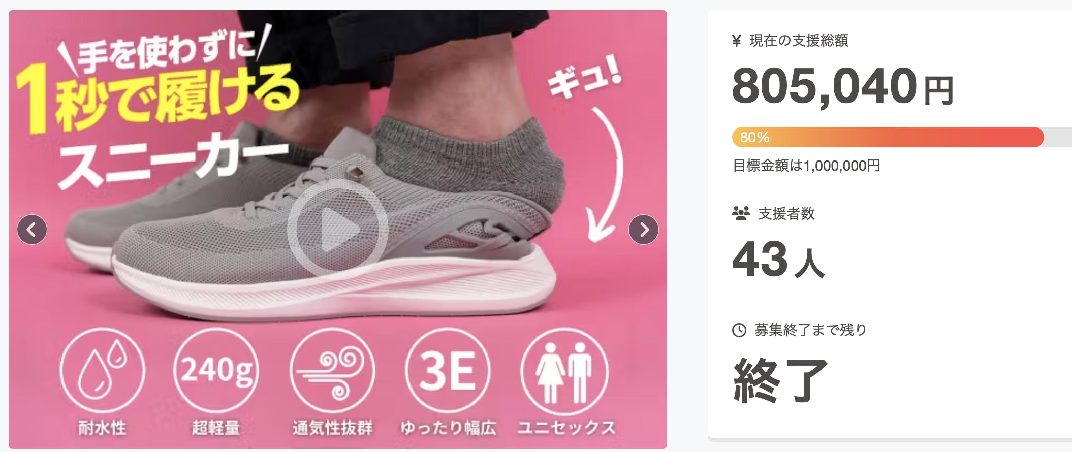 2024/09/02 14:26皆様こんにちは。先日プロジェクトが終了いたしました。この度は弊社の「1秒で履けるスニーカー」LAQUNをご支援いただき、誠にありがとうございました!皆様の沢山のご支援が今後の製品開発の励みになります。【プロジェクト結果】・支援総額:805,040円・サポーター様人数:43名現在は製品の開発を予定通り進めており、サポーター様への商品の発送は12月頃を予定しております。また今後の製品に関するお問い合わせは弊社公式LINEでも承っております。新商品情報なども発信予定ですのでリンクからぜひご登録ください!▼公式LINEはこちらhttps://liff.line.me/1645278921-kWRPP32q/?accountId=704peaowーーーーーーーーーーーまた店舗でのサイズ体験も可能です。サイズ感が不安な際にはぜひお立ち寄りください!▼LAQUN上野本店・〒110-0014 東京都台東区北上野2-30-9 1Fアクセス・東京メトロ日比谷線「入谷駅」より徒歩1分Googleマップhttps://maps.app.goo.gl/pUrdAPJdy9jpf5Jy9営業時間・11時~18時(月~土 日曜日はお休み)ーーーーーーーーーーー引き続きどうぞよろしくお願いいたします。 もっと見る