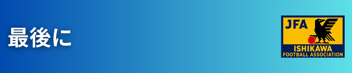 日々の練習に励み、全国大会出場を掴んだ中学生の選手たち、そして運営のお手伝いをしてくださる多くの地元中学生たち、関係者の安全を確保し、全力で大会に挑み、楽しんでほしい。そして石川大会の全日程を無事に終えたい。石川県サッカー協会では、石川県実行委員会サッカー競技をはじめとする関係者の皆様とともに、安心安全な大会に責任をもって取り組みます。どうか、皆様のあたたかいご支援をお願いいたします。