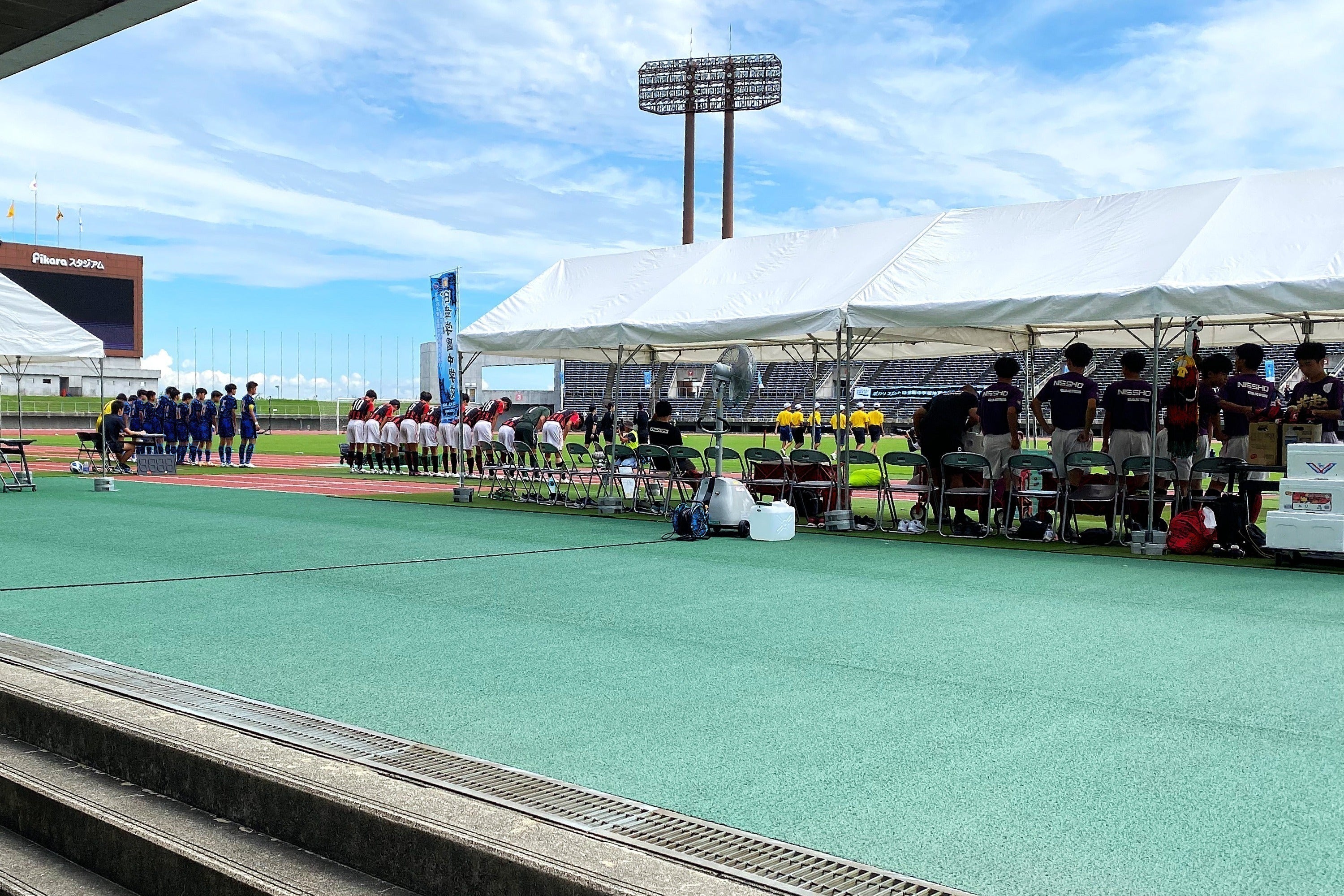 今大会のサッカー競技は、熱中症対策のため、1日最大8会場に分散し、1日・1会場あたりの試合数を減らして、できる限り炎天下を避けて試合を行います。ただ、近年の急激な天候の変化により、夏は猛烈な暑さが襲います。昨年の大会もとても暑く、競技役員からも「座っているだけで苦しい日もあり、少し動くだけで、汗がポタポタと流れた」と聞いています。