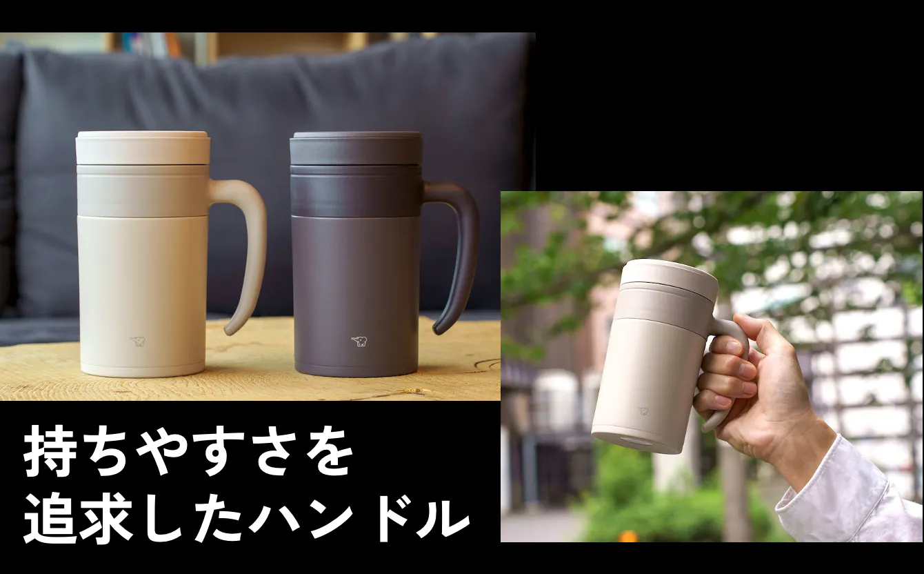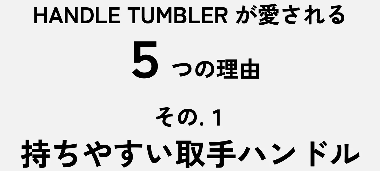 HANDLE TUMBLER最大の特徴でもある取手部分。スッと握りやすく、小さなお子様からお年を召した方まで安心して使用できます。