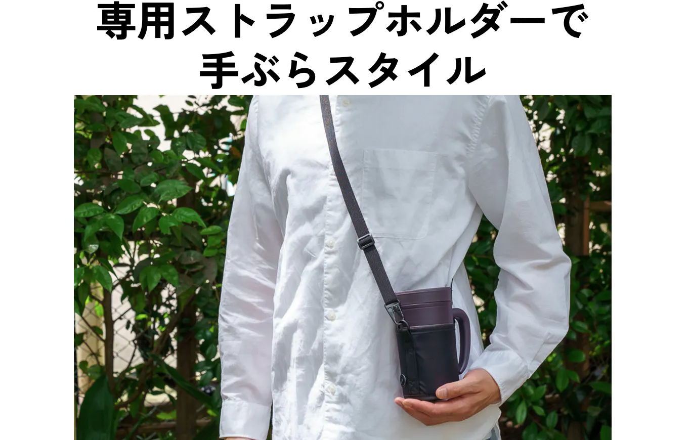 専用ストラップは缶ビールやペットボトルを入れることもできるので、HANDLE TUMBLERを使用せず、この専用ストラップだけを持って外出するのもありですよ。