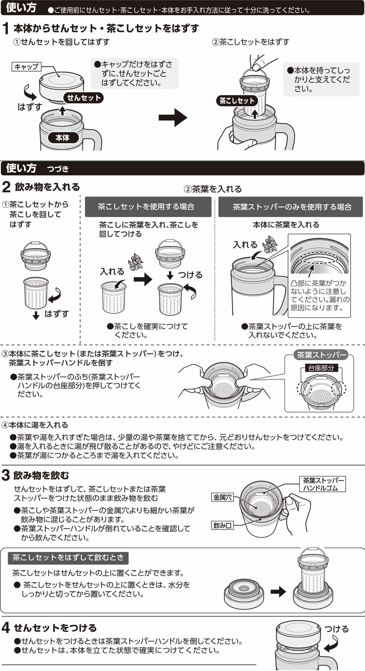 ・使用後は中をよく洗ってください。腐敗、せんセット飛び出しの原因になります。