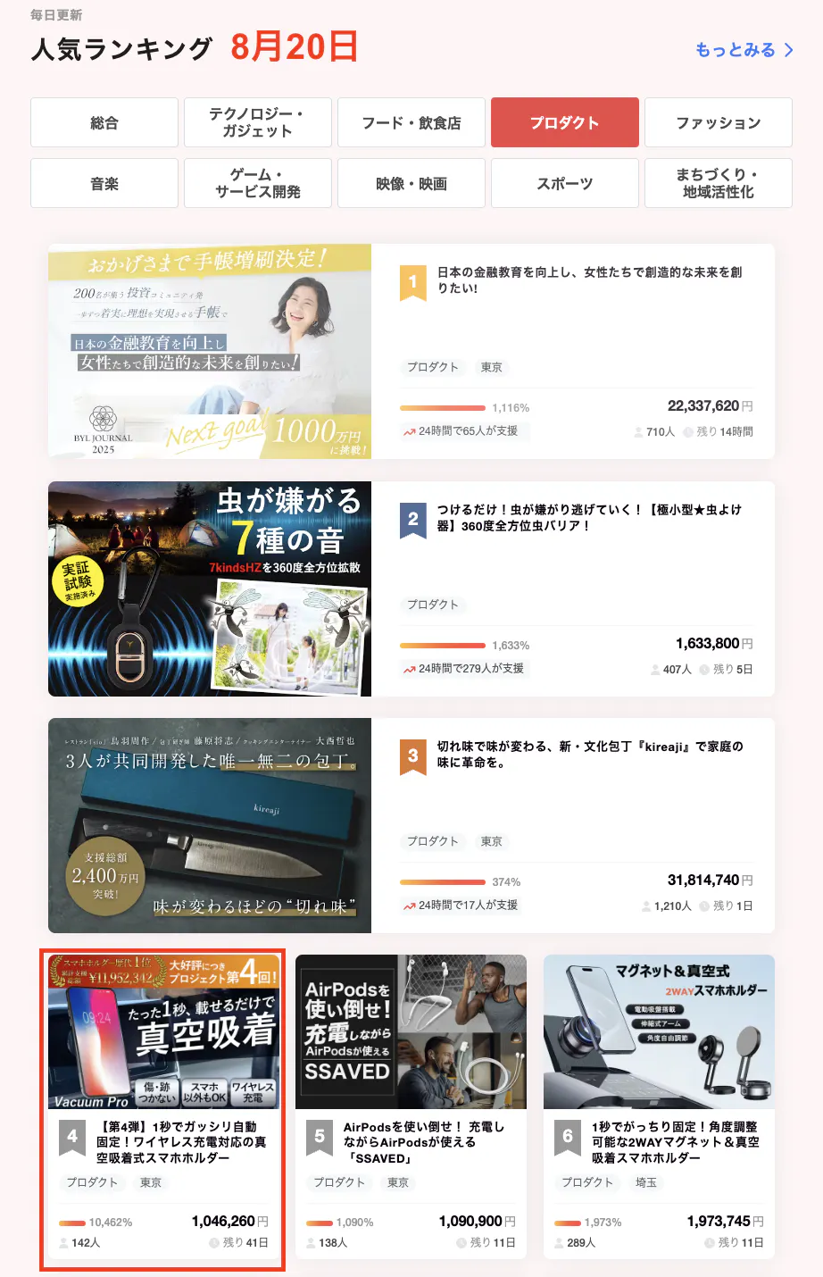 また本日のCampFireランキングプロダクト部門で 4 位!