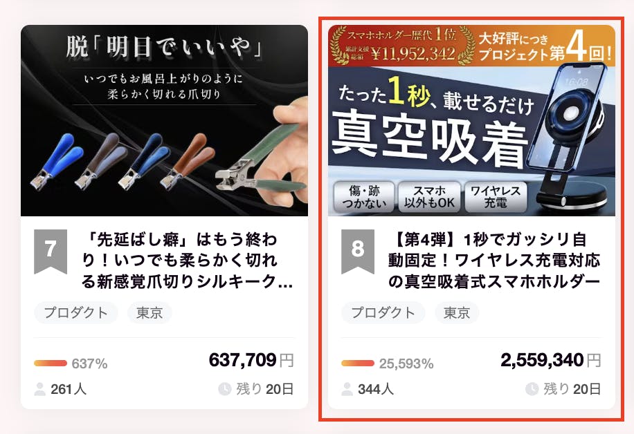 また本日のCampFireランキングプロダクト部門で 8位!