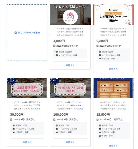 これ以外にも様々なリターンをご用意しているので、よろければ全体のリターンをご覧いただけたらと思います。