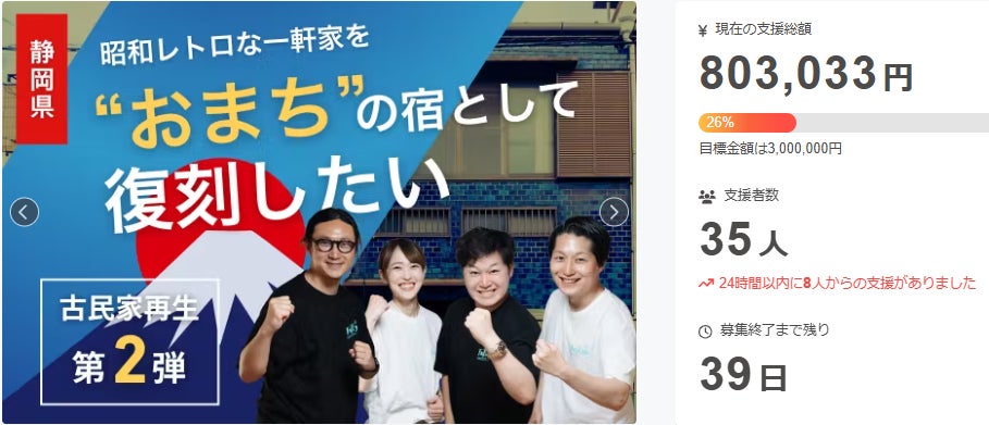 現在803,033円のご支援をいただいていて目標の300万円に対して26%の進捗状況です。本当にたくさんの方に応援や励ましのお言葉を頂戴し、私たちも身が引き締まる思いです。