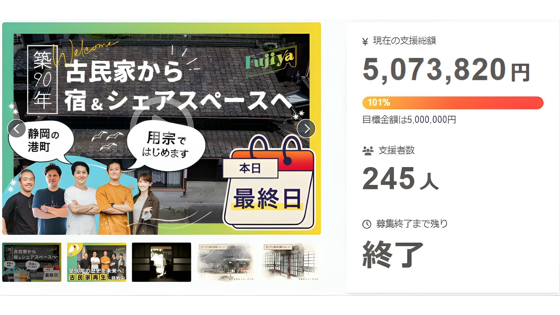 245人の方にご支援いただき、ミクソロジーハウスふじやを立ち上げることができました。