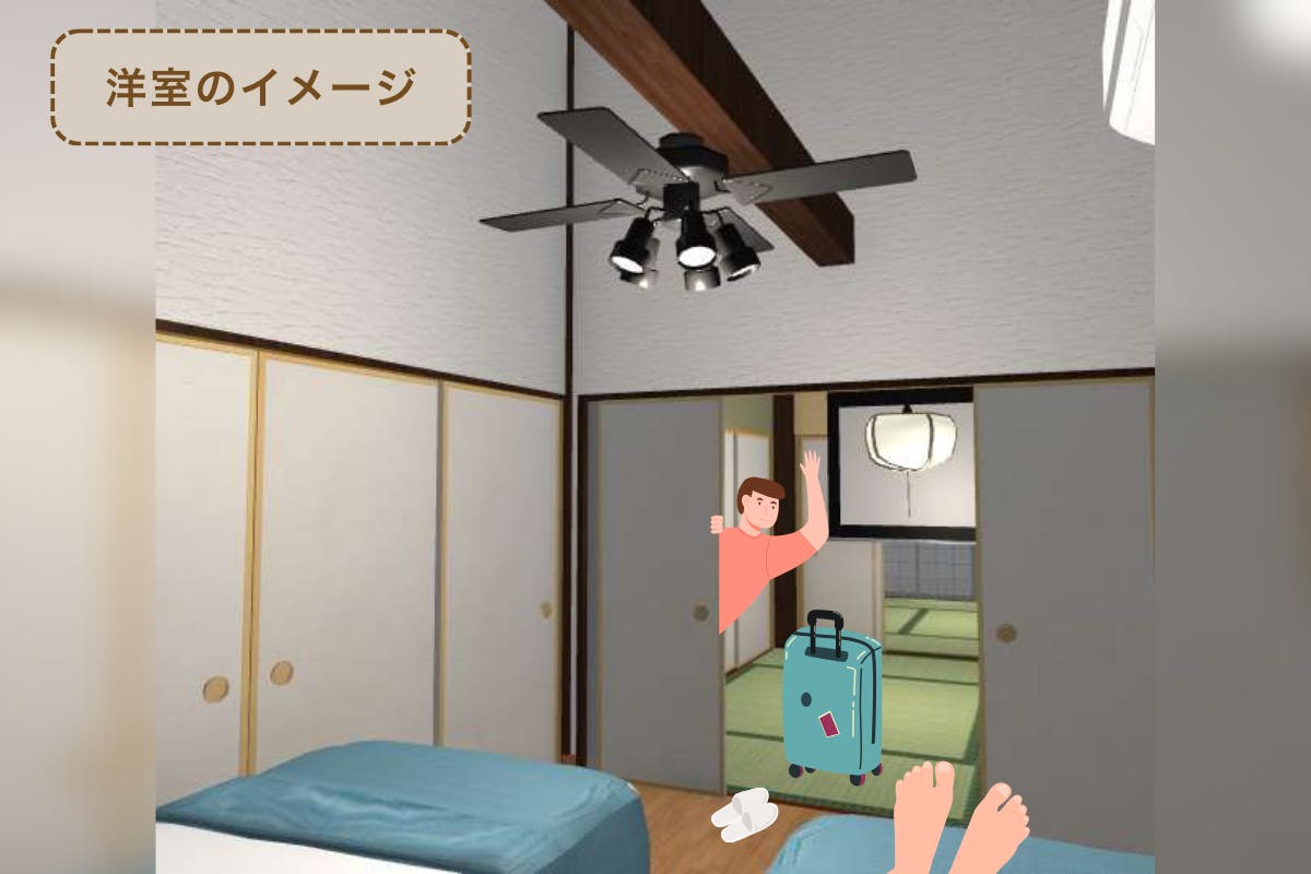 洋室と和室を両方備えているので、宿泊の皆さまはそれぞれお好きな場所でお過ごしいただけます。