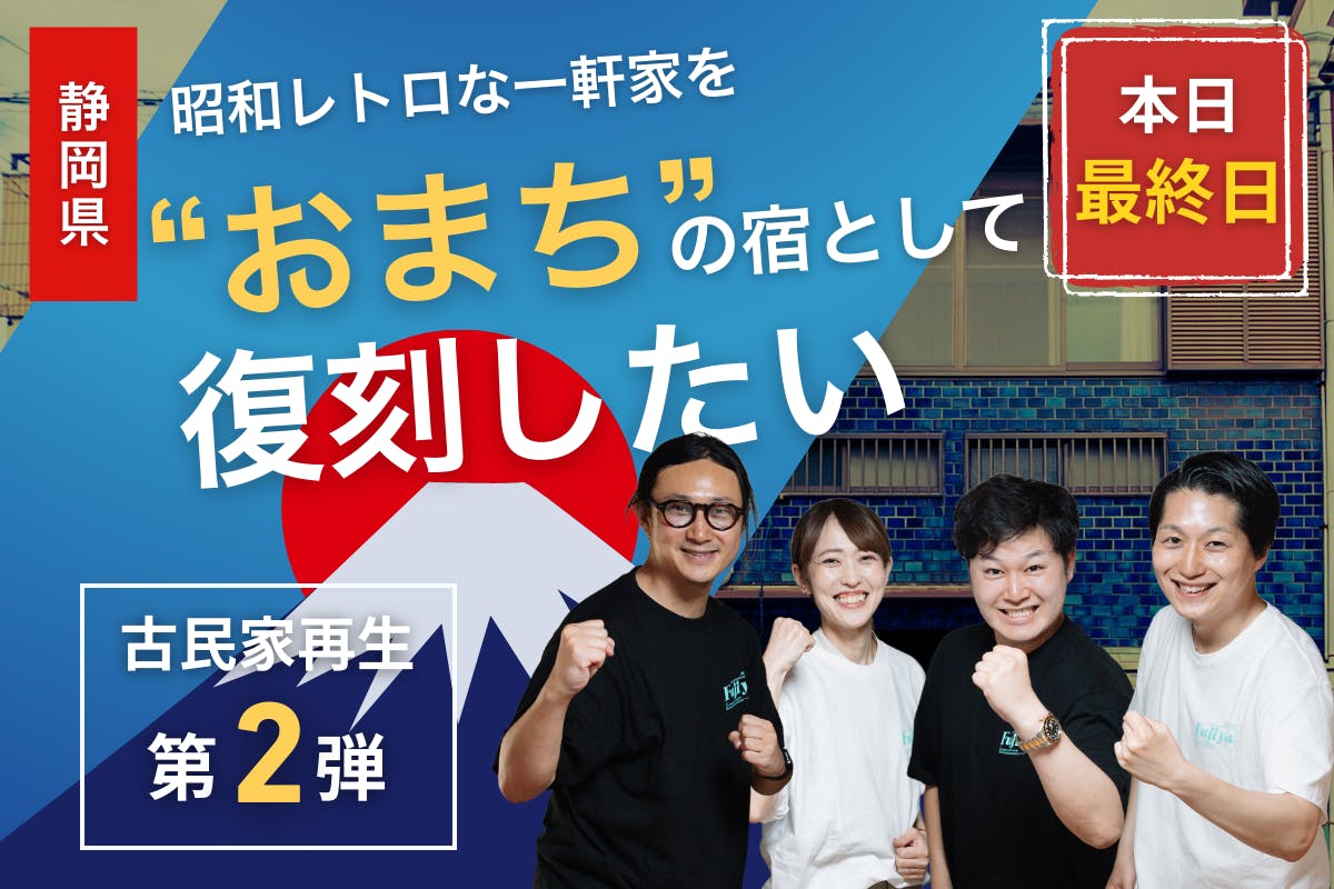 2025/08/31 16:50こんにちは!Astlocalの山本です。静岡駅すぐ近くに大人数で泊まれる宿を立ち上げるプロジェクト、「ミクソロジーハウスおまち」。 街中(おまち)に、人と地域が繋がり、誰もが気軽に立ち寄れる新しい拠点を作りたい。そんな想いで無我夢中で走り抜けてきたクラウドファンディングが、ついに、、本当に、最終日を迎えました。終了時刻は、本日8月31日(日) 23:59。______________________▼プロジェクト第二弾はこちらhttps://camp-fire.jp/projects/852288/view______________________■ぼくたちが、なぜこの挑戦を始めたのかこのプロジェクトは「おもしろい街は、自分たちで作る」という想いがチームの根っこのところにあります。静岡市には、魅力的な個人店がたくさんあるのに、夜市やイベント時以外はなかなか回遊が生まれない。そして、中心市街地でさえ、少し歩けば活用されていない空き家が点在している。「この空き家が、街の歴史を語り、未来の交流を生む場所に変わったら、おもしろいんじゃないか」 「大人数で泊まれる宿があれば、もっと多くの人が静岡の夜を楽しんでくれるんじゃないか」そんなきっかけから、築60年超の昭和レトロな空き家を、10名以上が泊まれる民泊施設へ再生する挑戦が始まりました。ここを単なる宿で終わらすつもりはありません。宿泊者は街へ出て食事やお酒を楽しみ、街のお店は宿泊者で潤う。「泊食分離」を掲げ、施設と地域が共存共栄する、新しい観光のハブを目指しています。この理想の形が一足先に始めた用宗の「ミクソロジーハウスふじや」では見えかけています。このモデルケースに続くように、おまちも追いつけ追い越せでさらに地域と発展していく宿にしていくつもりです。■全員で一緒に創り上げてきた、この場所ぼくたちは、この場所を「地域と共に創る宿」にしたいと本気で考えています。 これまでも、壁塗りの左官イベントや柱塗りイベントなどの「修繕ワークショップ」を開催し、たくさんの仲間たちと一緒に汗を流してきました。このプロジェクトは、ぼくたちだけのものではなく、関わってくれた全ての人の想いが詰まった場所だと勝手ながら考えています。そして、クラウドファンディングを通じて、その輪はさらに大きく広がりました。 これまで、実に88名の方から、ここでは仲間と呼ばせていただきます。仲間から、1,662,633円もの温かいご支援をいただきました。画面の向こう側から届く一つ一つの応援に、どれだけ勇気づけられたか分かりません。本当に、本当にありがとうございます!!▼直近の応援メッセージを抜粋『いつもX見て勝手に背中押されてます! 応援しています!押忍!』『最後の最後になってしまいましたが、応援しています!』『桜井さんはじめAstlocalの皆さんの挑戦を止めない姿勢を、いつも尊敬しています。これだけ街中に民泊が出来るのもすごいこと。全力で応援してます!』『皆さんのご活躍も相まって、静岡の熱が高まってきているような印象を受けています。静岡という地が、もっと盛り上がると良いなという思いで支援させて頂きます!』■目標達成まで、あと少し。あなたの力を貸してください!目標金額は300万円。 正直に言って、簡単な道のりではありません。ですが、仲間たちのおかげで、ゴールはもうすぐそこまで見えてきています。必ず理想を実現させるため、ぼくたちの挑戦は終われません。 もし、こういった静岡そして地方の街づくりや空き家問題解消、観光発展に少しでも共感し、「良さそうなことやってるじゃん」「応援してもいい」と思っていただけたなら、最後の力を貸していただけないでしょうか。こんな方に、ぜひ仲間になってほしいです! ・静岡の街づくり、地域活性化に関わりたい ・おもしろいプロジェクトを初期から応援するのが好き ・歴史ある建物の再生やリノベーションに興味がある ・応援の証で施設に自分(自社)の名前を刻みたいリターンは、「永年掲載のスポンサーボード」「民泊立ち上げや運営のコンサル」「Astlocalイベント」など20種類以上をご用意しています。これから事業を始めたい方にも用宗でゆったりされたい方にも、多くの方にご満足いただけるような内容を準備したつもりです。そして、仮にリターンへの支援が難しくても、応援の方法はあります。 この投稿に「いいね」を押したり、「リポスト(シェア)」で広めてもらえるだけでも、ぼくたちが届けられなかった誰かにこの想いを届ける、大きな力になります。▼X(Twitter)ポストhttps://x.com/tatsumin_ec/status/1962057704312303695▼Facebookポストhttps://www.facebook.com/tatsumi613?locale=ja_JPプロジェクトの応援やSNSでの発信というプレゼントをお願いできるとありがたいです。勝手なお願いを失礼しました。残り時間はあとわずか。 最後の瞬間まで、ぼくたちAstlocalは最後まであがきます。 一緒にこのプロジェクトを叶える当事者になってください。 最後の最後まで、応援よろしくお願いします!!日曜の夕方という忙しい時間にこの長文を最後