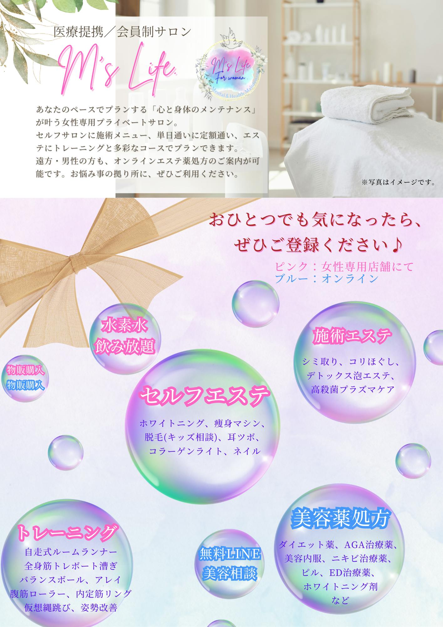 ・当店はエステサロンであり、医療行為は行えません。メディカルはあくまでも提携医院による医師からの診察と処方となります。