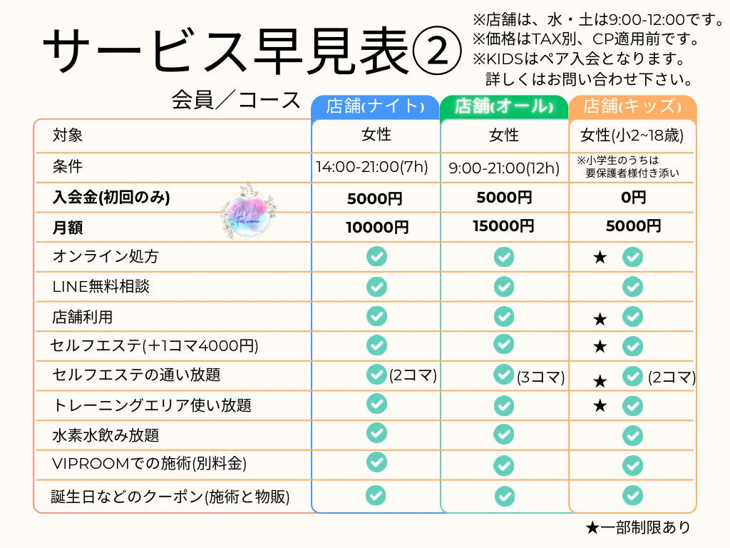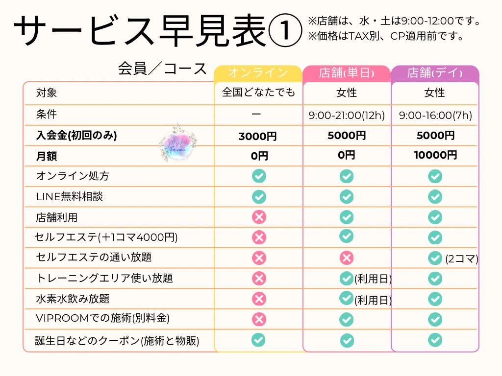 ご入会の際に3300円または5500円を頂戴しますが、会員価格で受けられるサービスは断然お得!!(ぜひ比べてみて下さいね)