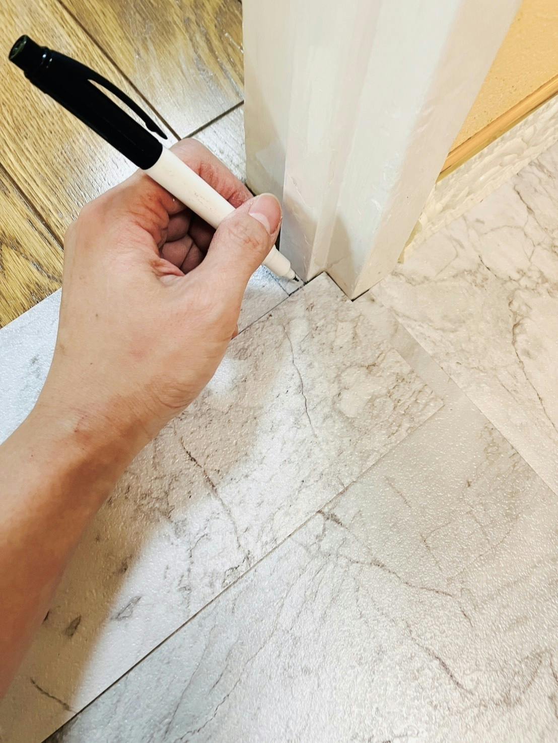 さて、昼間は相変わらずDIYをしております。床の切り貼り、素人仕事ですが一生懸命やっております。