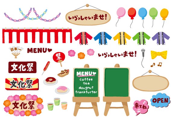 文化祭の舞台ステージや教室ごとの展示ブースに並ぶような、