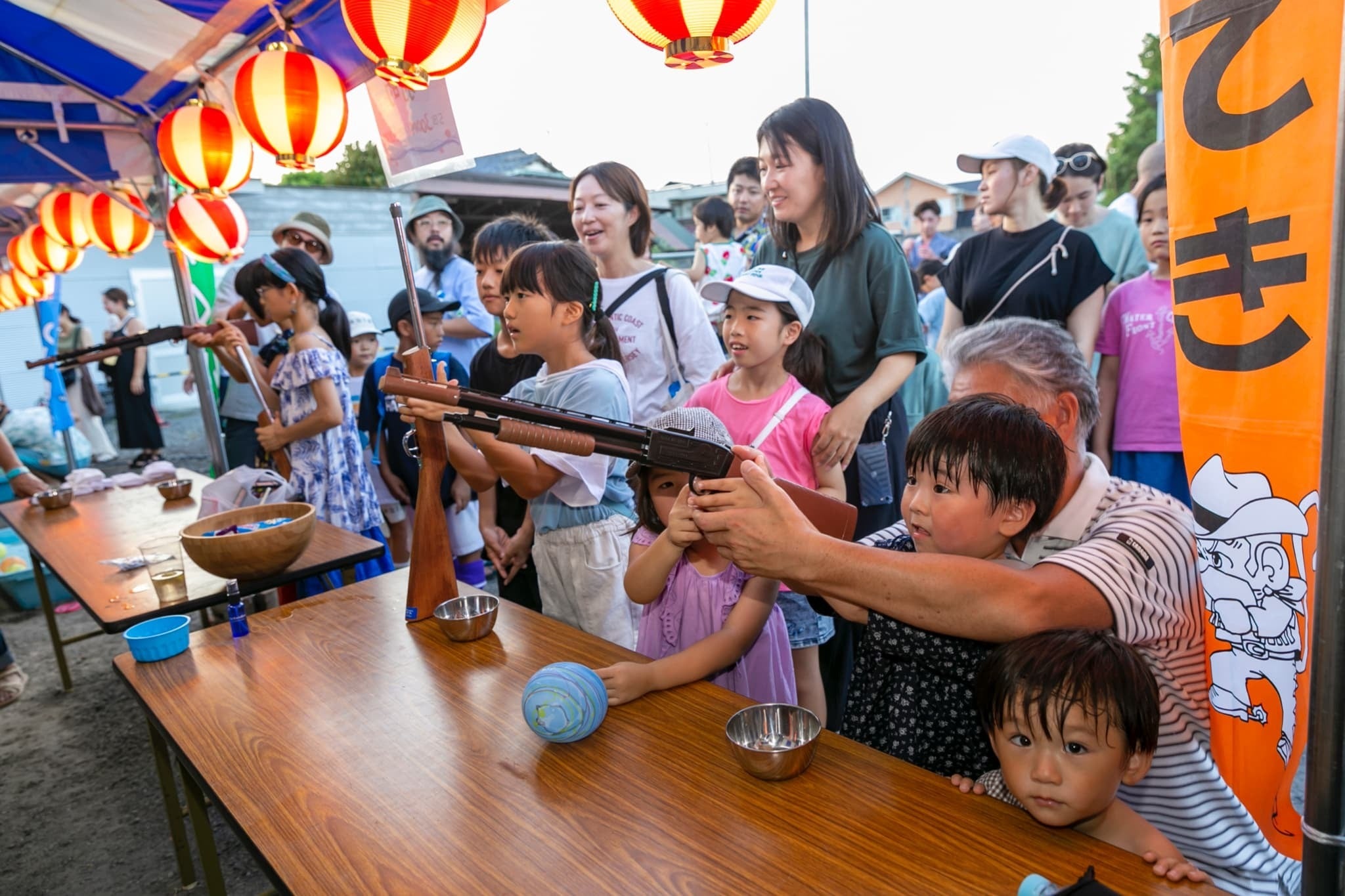 射的やヨーヨー釣りなど、子供にとっては新しく大人にとっては懐かしいブースも