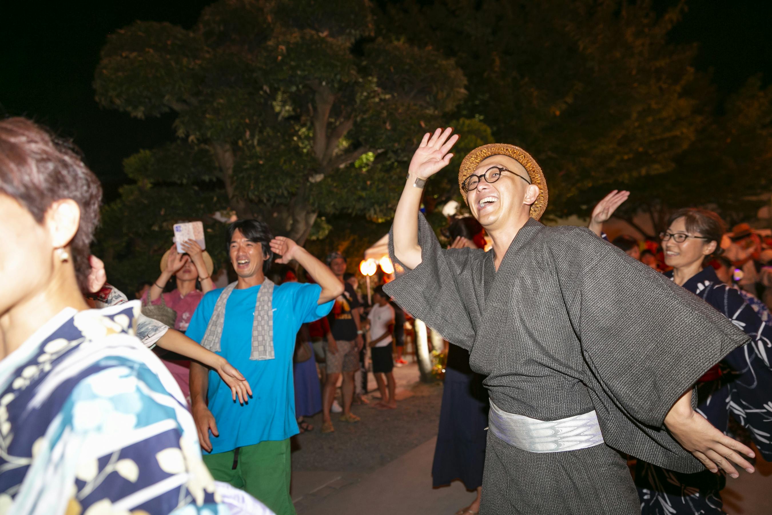 夜はやぐらを組み、お客様とスタッフが一緒に盆踊り