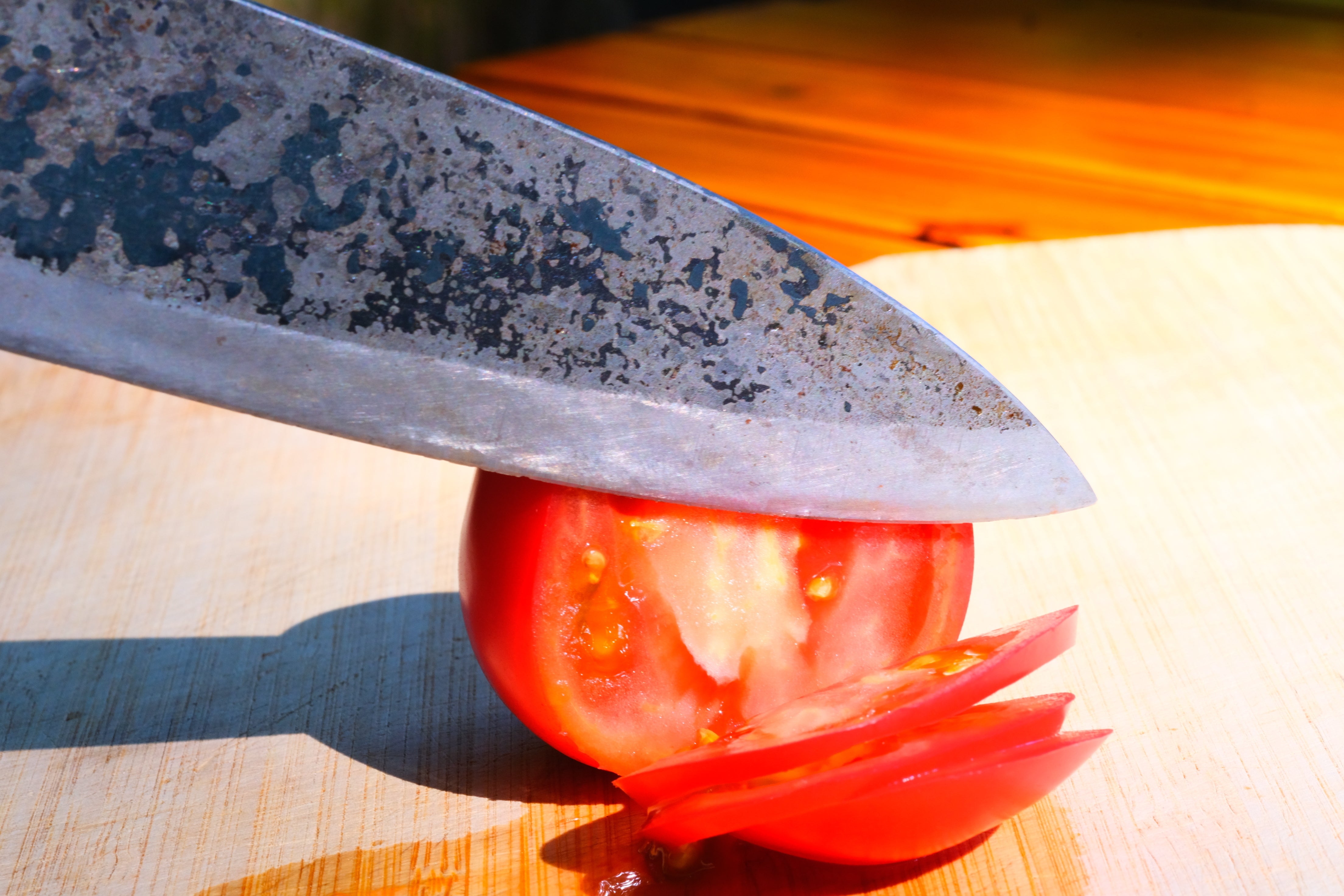 その方法は水焼き入れと油焼き入れがあり、水焼き入れの方が油焼き入れより行程難度が高いゆえに急激な冷却が可能ですのでより細かく締りのよい硬さと鋭い切れ味を持続させることができます。