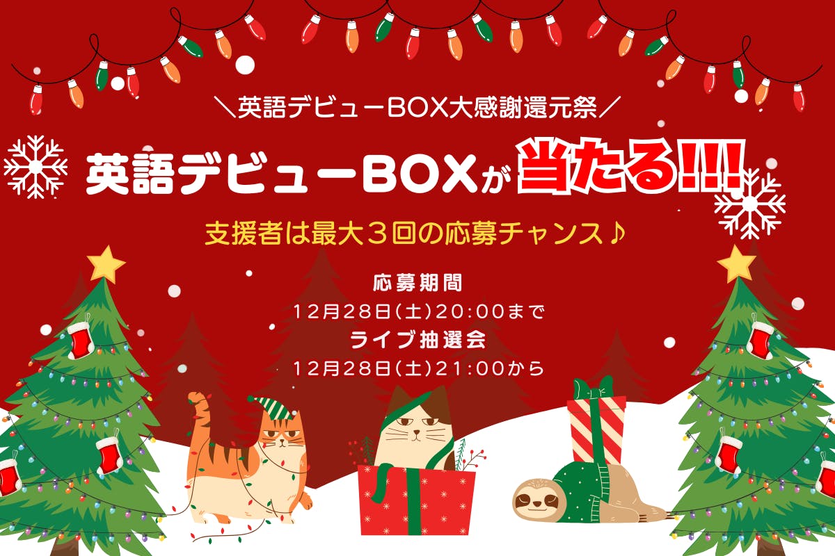 YouTubeライブ抽選会(28日21:00スタート)に参加いただいた方の中から抽選で5名様に「英語デビューBOX」をプレゼントいたします。