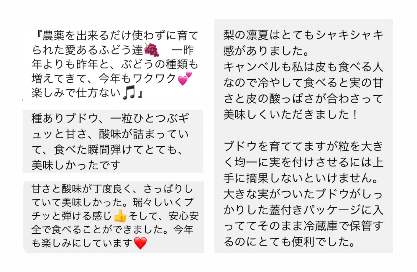 パーマカルチャー概念と、植物自体を強くする剪定方法を取り入れたかわせファームの果樹は「果樹本来の甘みと旨味」を感じられ、「おいしい」といった嬉しい口コミをいただいています。