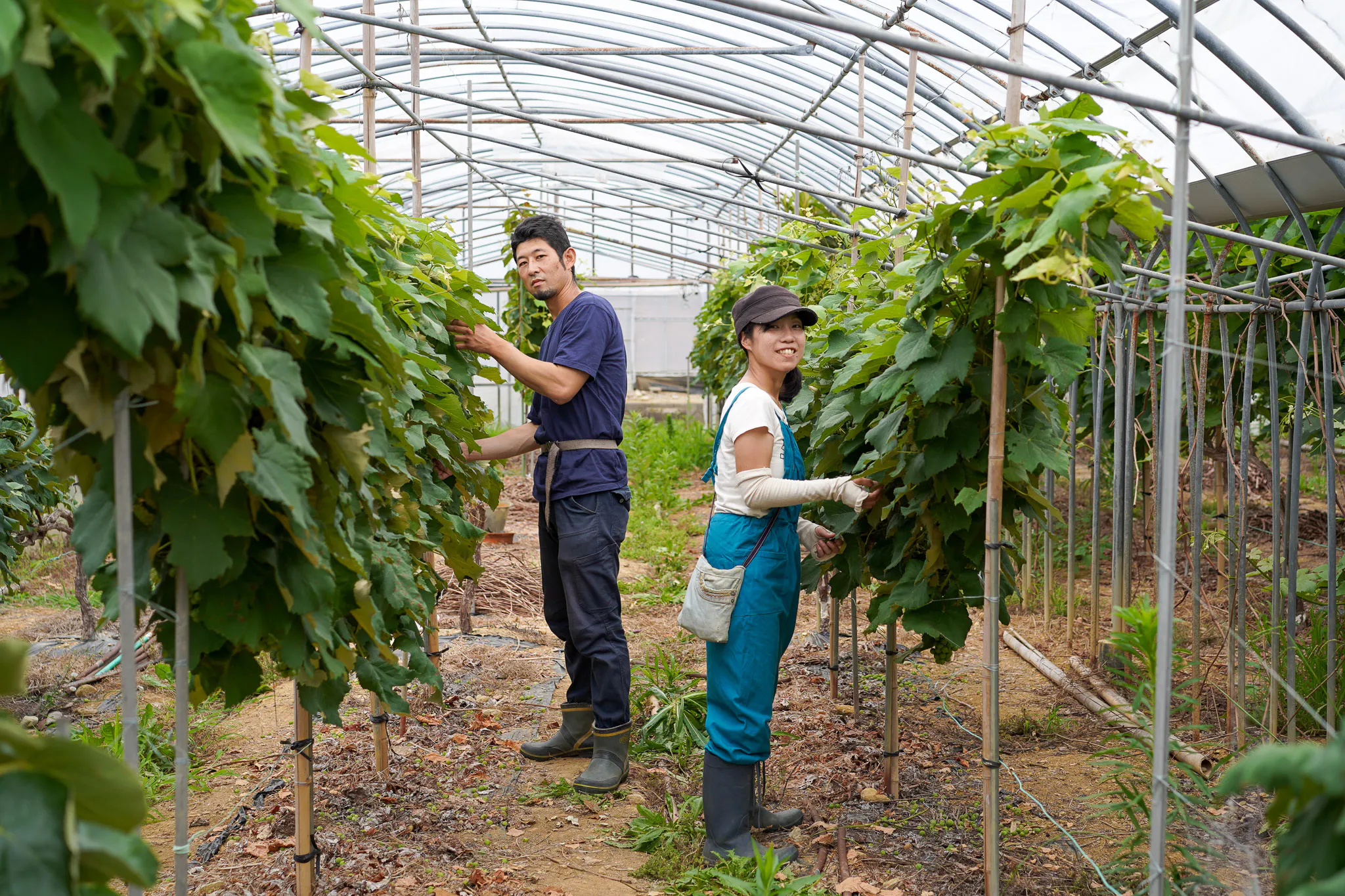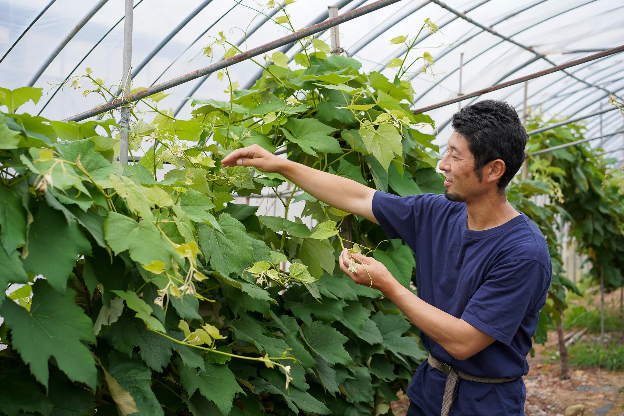 “環境に優しい循環型の社会を作る”考え方である「パーマカルチャー」と植物ホルモンを活性化させる剪定方法(道法スタイル)を積極的に取り入れ、ブドウ、梨、レモン、キウイ、みかんなどの果物を愛情を込めてつくっています。