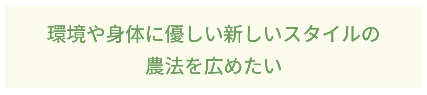 このままでは日本の農業がいつまで経ってもいい方向に進まないと考え、厳しい状況ですが私たちは環境に配慮し、肥料・農薬を使わないことを目標に農業を行うことを決意しました。