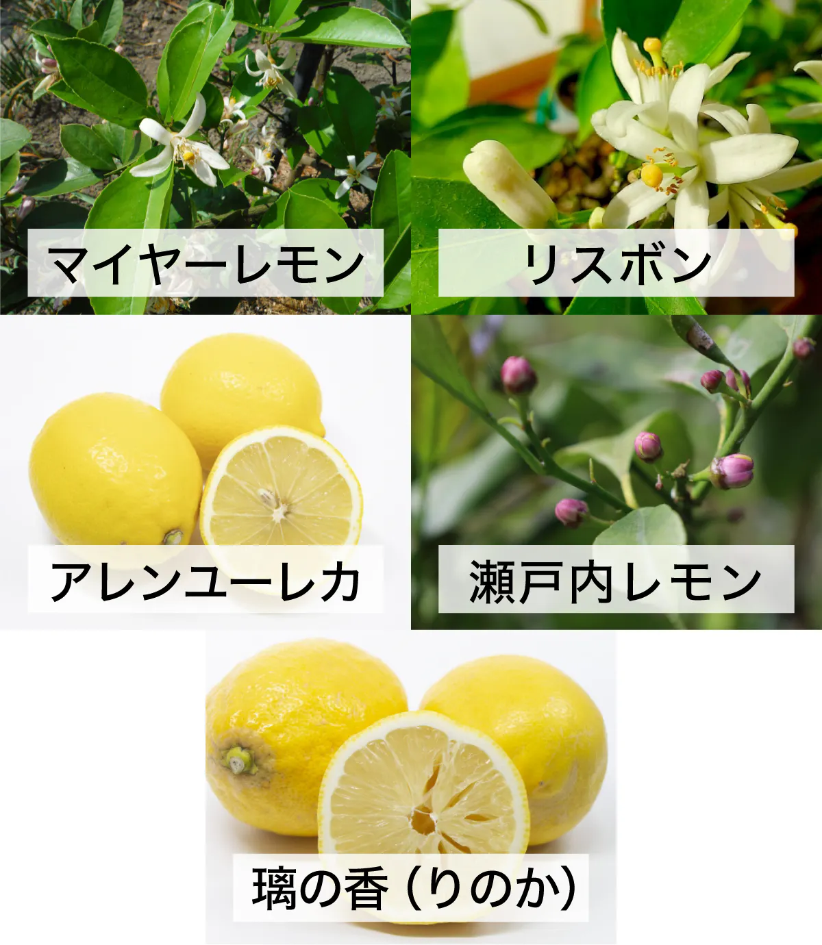 常夏レモンは防カビ材(WAX)無の国産レモンとして、現在ビニールハウスにて第1期の植樹を開始。苗木の種類は以下の5種類となっています。