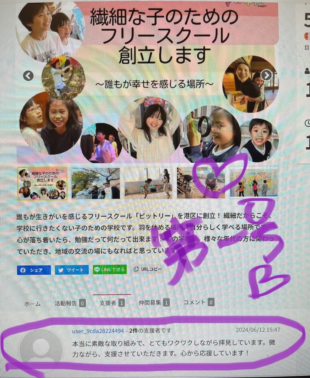 支援者第一号の方、現れました(涙)