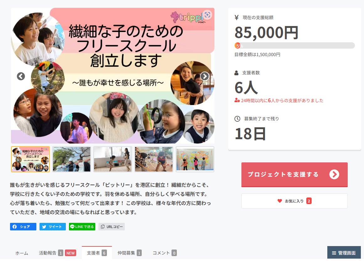 こんにちは。本日からクラウドファンディング開始しました!開始して30分後くらいに、支援者第一号の方、現れました(涙)トリッピーの教室で、デスクスタッフの加藤さんと涙しました!本当にありがとうございます!皆さんの善意でトリッピーはできています!(^^)!