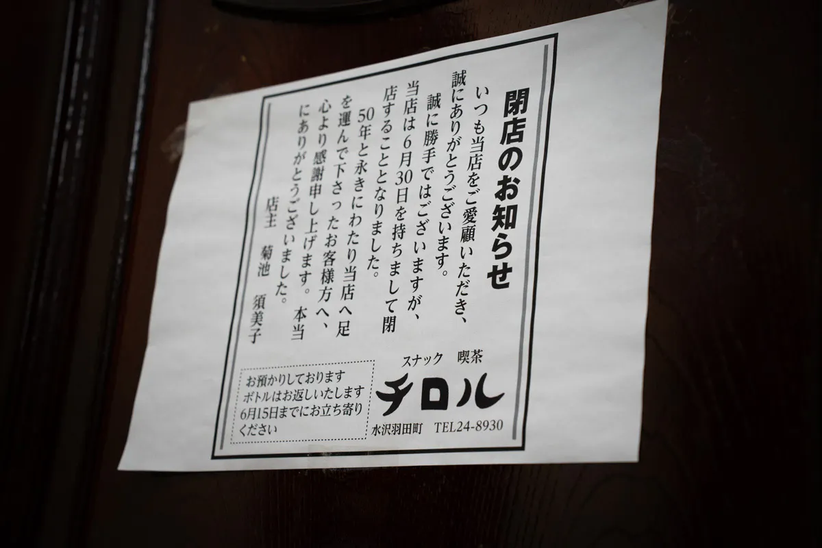 『スナック喫茶チロル』の閉店。