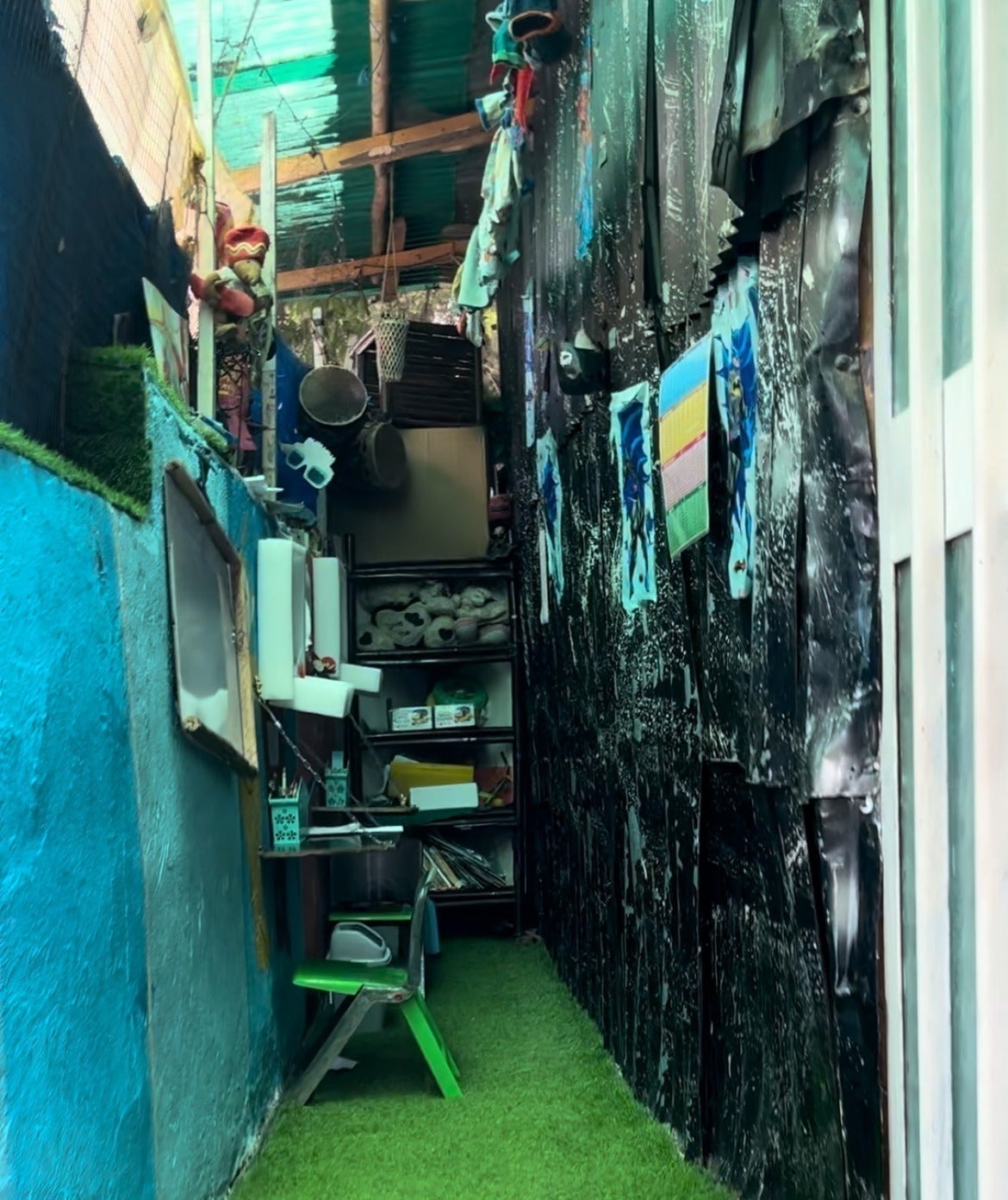 事実2:ライアルは7歳になる双子の男の子のシングルマザーで、看護師である。しかし、月給は約15,000円くらいだ。もちろん物価が安いエチオピアでは食べ物の場合1/3程度だが、服などは日本と同じだ。生活出来なくもないが、何も贅沢ができないとても苦しい生活である。写真にも記載があるが、0枚目の写真は家の外に設置した双子の勉強空間出そうだ。家が狭すぎるあまり、外にしか作れず、幼稚園終わった後、暗くなる前まで、そして雨が降っていない時のみしか勉強出来ないそうだ。(下の写真はライアルのお家の玄関です。)