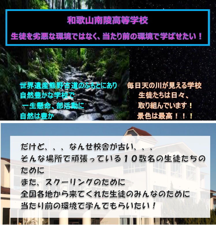 「生徒を劣悪な環境ではなく、当たり前の環境で学ばせたい!!」