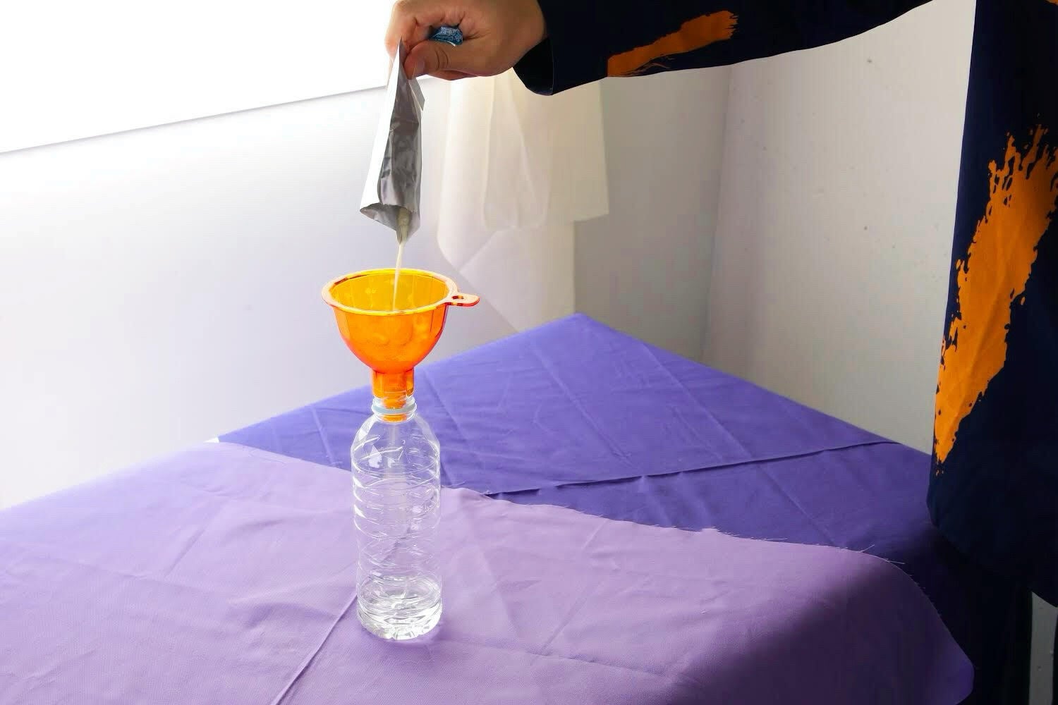 シェイカーで飲むのも良し、特典として提供される特急じょうご(漏斗)を使ってコンビニで購入したペットボトルの水や炭酸水に入れて飲むこともできます。