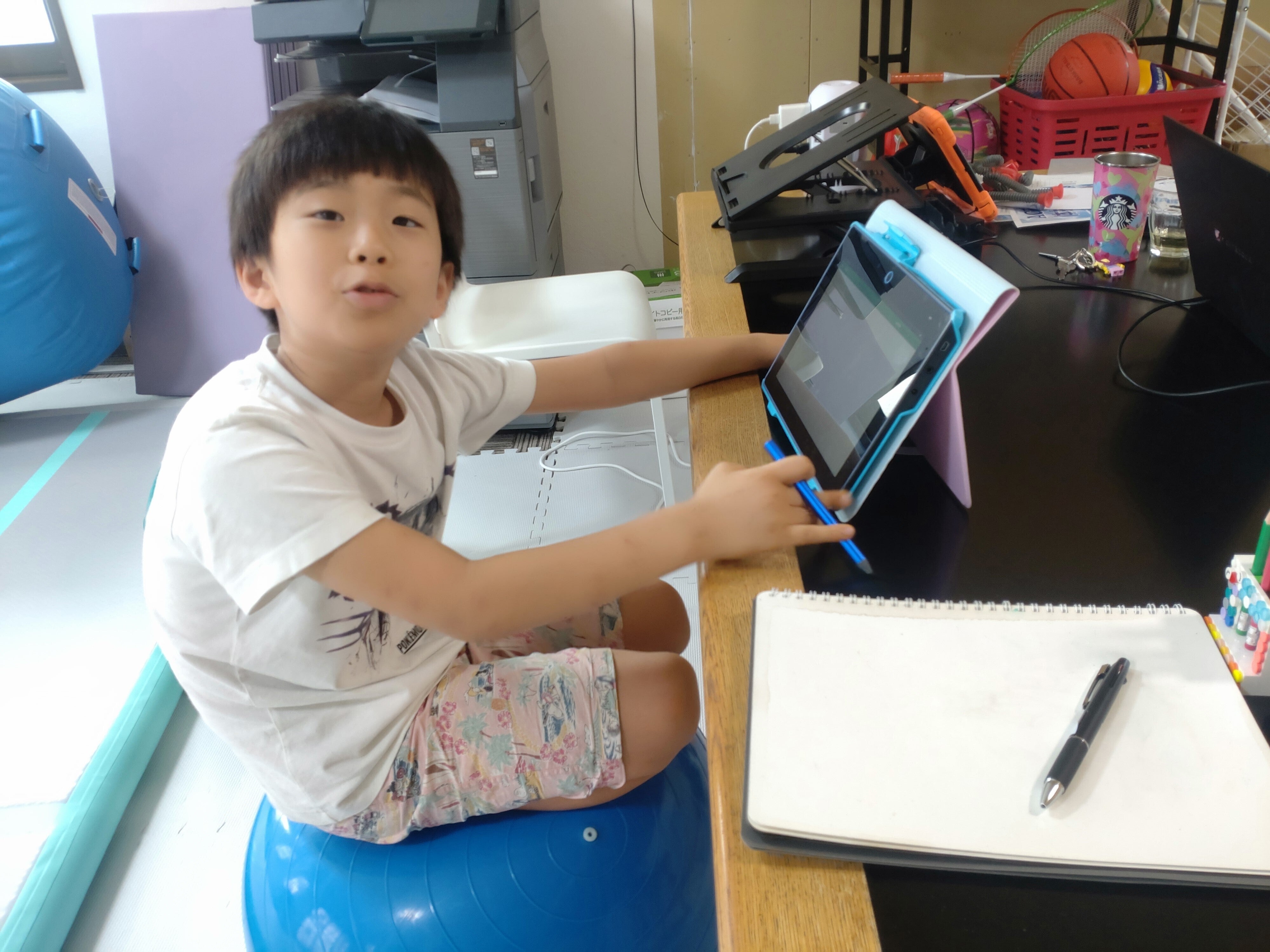 先週から体験の小学2年生を受け入れております。数日ですが、いつもの小3・小6としっかり打ち解けて、本日は、Gボールで遊んだり、キックボクシング用の空気が入るタイプのサンドバッグで戯れて、、ラックの組み立てを一緒にやったり、急に視力検査がはじまったり、工作をしたり…その場その場で、1人で遊んだり2人だったり3人みんなでだったり…各々好き好きに過ごしていました。学習の時間は、6年生は算数ドリル、3年生は進研ゼミチャレンジパッドで社会の課題に、体験の2年生はPCでジブリの映画を少しだけ観ました。いつも学習の時間は午後14時ごろを希望する子が多いのですが、この時間子どもたちけっこうしっかり集中できているんです。体を動かした後に学習をするとですね、代謝があがりますので脳の動きが活発になります。より集中できるようになり、学習効果が高くなるよというのがわかっているのですよね。自然と理にかなっていて面白いなと。もちろんお子さんそれぞれのリズムもあるので、その日その日で学習の時間は決めてもらうようにしています。最初は新しい場所に緊張する子がほとんどかと思いますので、親御さんとご一緒に過ごしていただくこともOKとしております。本人が平常の状態で、サマーヒルが合うかな合わないかなというところを体感していただきたいので。また、この日は未就学の子のお母さまも見学にいらっしゃいました。当校小学生~中学生を基本の受け入れとしておりますが、未就学・高校生以上も、個別にご相談いただけます。必要とされている方の選択肢の1つとなれるよう、引き続きがんばってまいります!