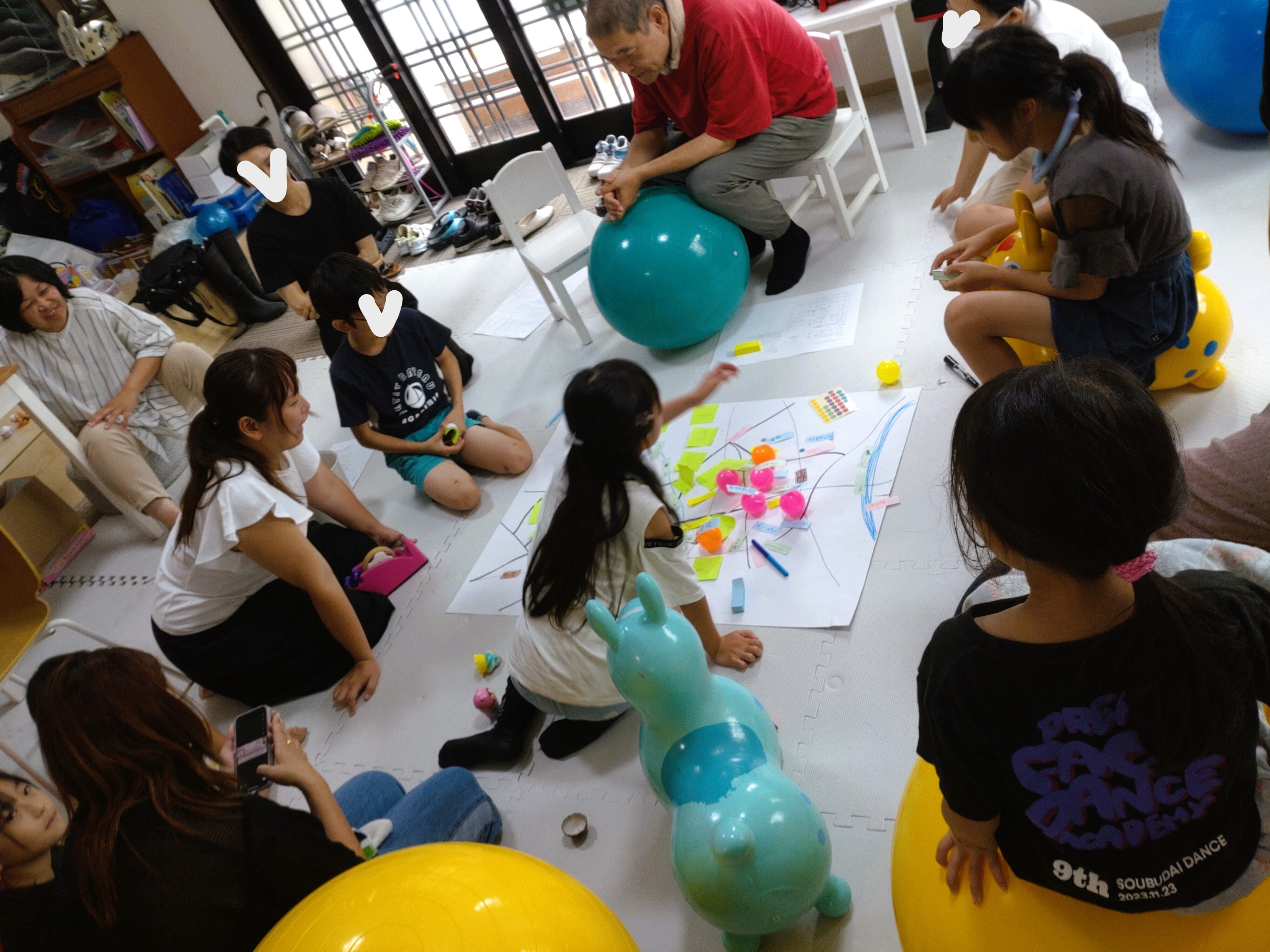 ソーシャルサイエンス教室、「オリジナルまちづくり」公開教室を開催しました!みんなで大きな白地図をオリジナルのまちに仕上げよう!という企画。まちの中にあるものを思い出して、それらの役割を考えて書き出して、たくさんたくさんイメージを膨らませて、、「さあ!では、まだ何もないこの地図をみんなで考えたまちにしましょう!」大きな白地図の上に、自分の考えたお店や公共の機関や駅などをたくさん書き込みました。教室終了後も自主的にワークは続き、付箋の書き込みは、子どもたちすべて白地図上に清書、さらに、自分の領土を作ったり、建物を書き足したり。ただの空想のお絵描きではなく、ちゃんと考えて作っている点がソーシャルサイエンスならでは。探究的な学び、みんなよく考えて取り組みました!