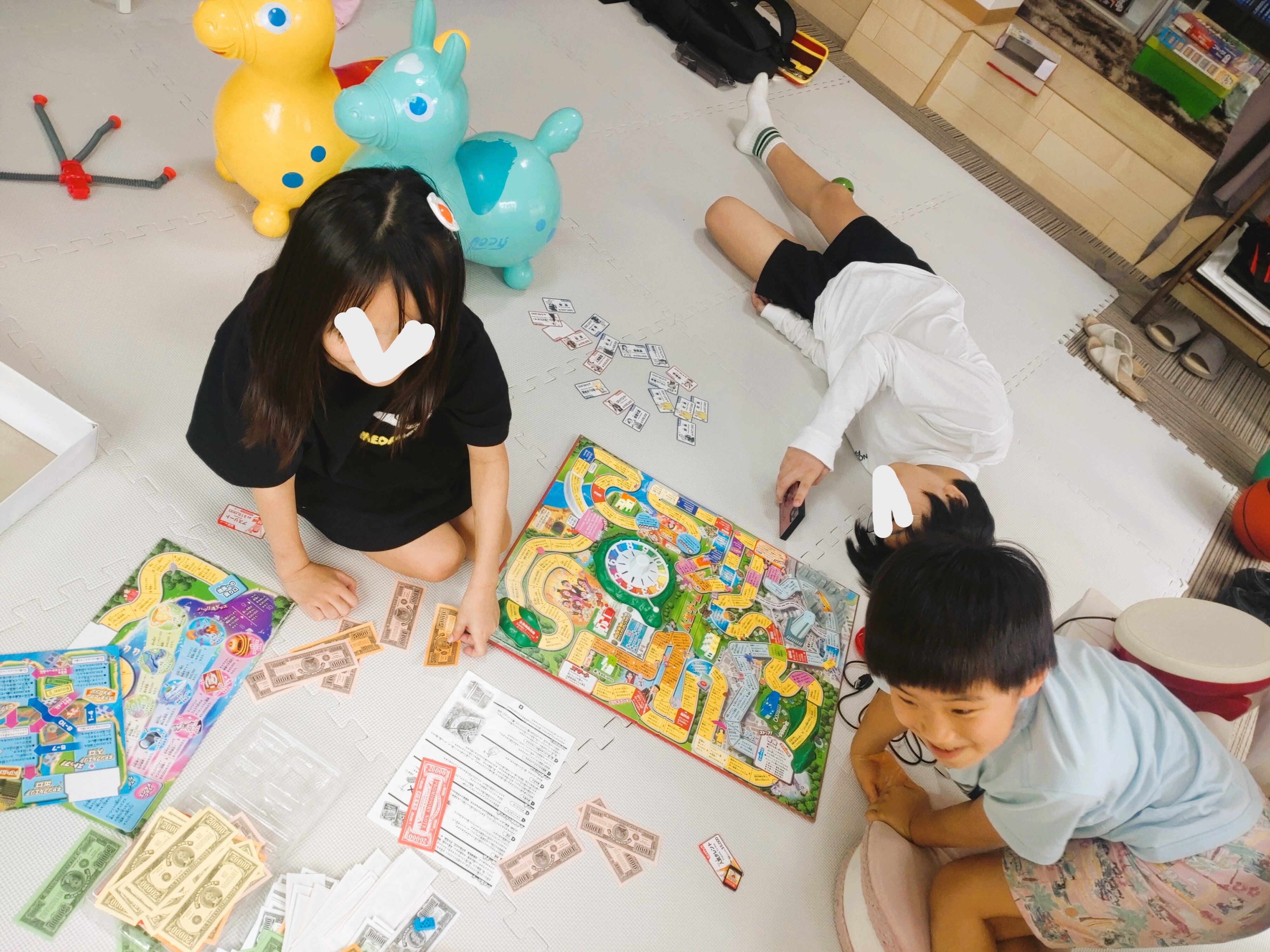 1日の過ごし方は、朝必ずお話しするようにしていて。何やりたい?を子どもも大人も自由に発言。勉強の時間も決めました。どのような流れだったかな、人生ゲームやろう!!!となり、大盛り上がりでした。人生ゲームはライフステージ・ライフイベントをざくっとさらえるうえに、いろんな職業があることを知ることができる。お金を稼ぐために、誤らないように計算もがんばりますし、給料日が待ち遠しい大人のリアルもスモール体験できちゃう笑「総理大臣になってもそんなにお金持ちじゃないね」「単位はドルだから円にすると…」家族が増えたり減ったり笑、お金が足りなくなったり、いろいろあってゴールした様子笑スマホ触っている6年生は、こちら何しているかというと、人生ゲームに気持ちは参加しながら、ご自身主催のスマブラ対戦会のチラシをね、スマホでデザインしているところでした。Canvaの使い方をお教えしまして。まずは紙に構図を描いて、その後ずっとデザイン業務がんばっていました。それから!eスポーツがんばるからにはVRもねと、Meta Questと任天堂ラボ、2台の体験をみんなでしました。午後の勉強の集中力もすばらしく、各々持参したドリルや進研ゼミのチャレンジパッドに取り組みました。