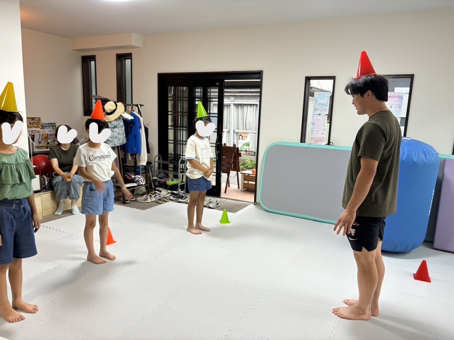 日本サマーヒル・アカデミーは、教育と体づくりに力を入れています。共同代表・新井庸太先生の体操教室(ACE GYMNASTICS STUDIO)は、体操の技の習得を目指すいわゆる“体操”ではないレッスンが魅力。得意な子も苦手な子も、個々のレベルに合わせた&その日の子ども達それぞれの気分なんかもしっかりみて運動プログラムをその場で構築しなおします。この日は、体の操作の基本につながる「カラーコーン遊び」。体験レッスンで体操教室はじめましての子もとっても楽しそうでした。その後マットを使っていろいろな動きにチャレンジ。ご覧ください、この跳躍!!体育館での教室と異なり、本校ではアットホームに少人数で展開しております。