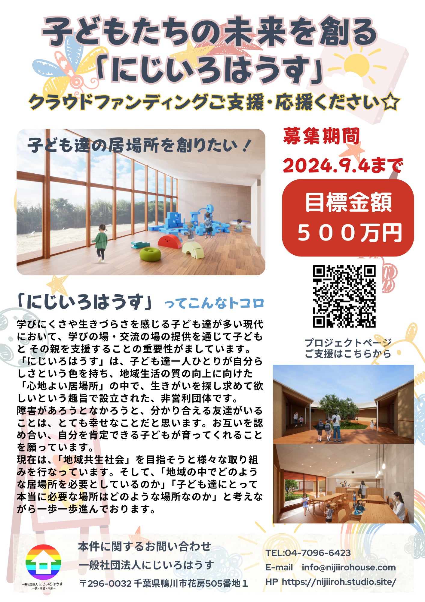 今秋、にじいろはうすは更にパワーアップします。子供達が心から安心して過ごせる大切な居場所がこれからもずっと存続するよう切望いたします。