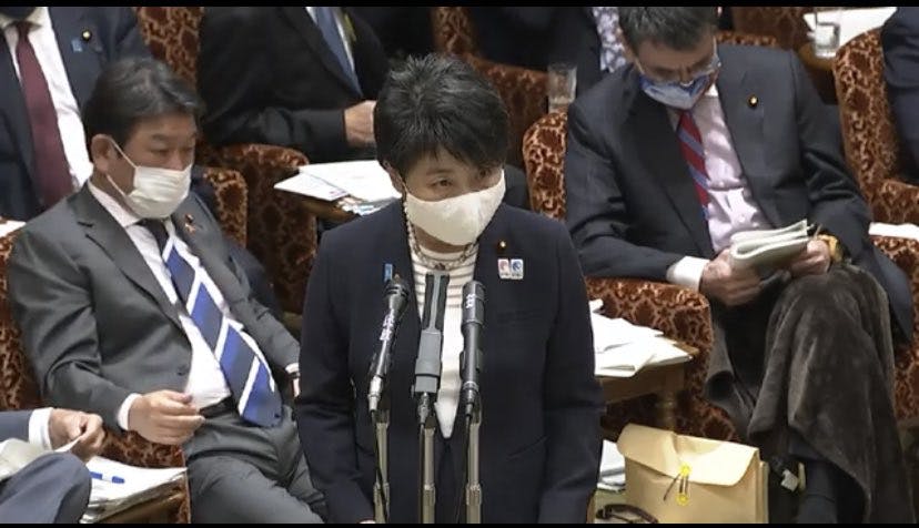 ▲答弁する上川陽子法務大臣(2020年11月6日参議院予算委員会 画像出典:国会中継)